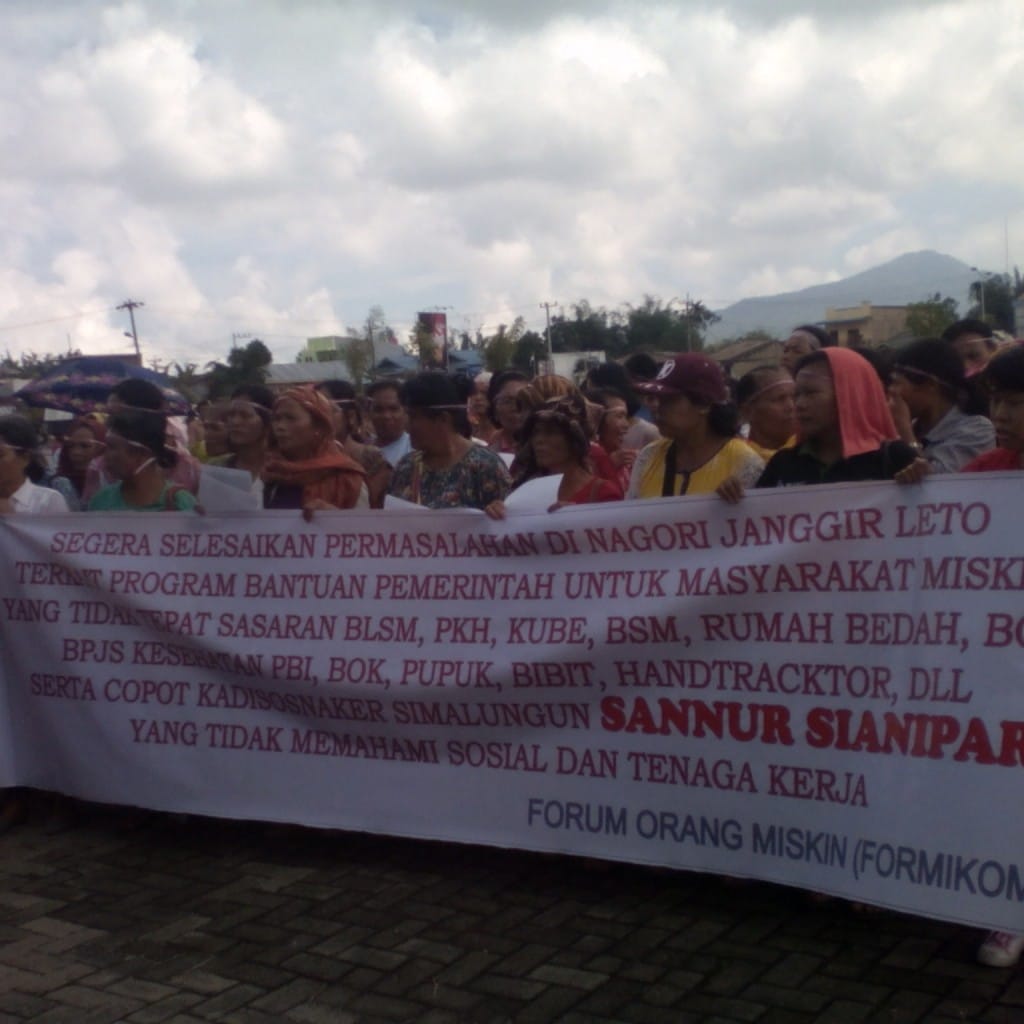 Sebagaimana diketahui bahwa Kementrian Sosial telah mengalokasikan dana yang cukup besar untuk Kabupaten Simalungun demi menanggulangi kemiskinan seperti Rumah Tidak Layak Huni (RTLH), Komunitas Adat Terpencil (KAT), Program Keluarga Harapan (PKH), Kelompok Usaha Bersama Ekonomi (KUBE), tahun 2015 sebesar Rp. 1 Milyar, dana disabilitas (Cacat) dan dana Lansia, program keserasian, bantuan sosial (bansos), Askessos, dan lain-lain. Namun dana yang besar itu tidak diketahui keberadaannya karena tidak adanya transparasi dari Dinsosnaker Kab. Simalungun dan tingginya tingkat KKN di Dinas tersebut sebab para penerima dana bantuan tersebut adalah hanya yang dekat dengan instansi tersebut. Sementara di Nagori Janggar Leto tidak ada satupun yang menerima Dana Lansia, Rumah tidak layak huni, KUBE dan lain-lain. Oleh karena itulah mereka mengadukan dan menyampaikan hal ini langsung kepada Bupati Simalungun.