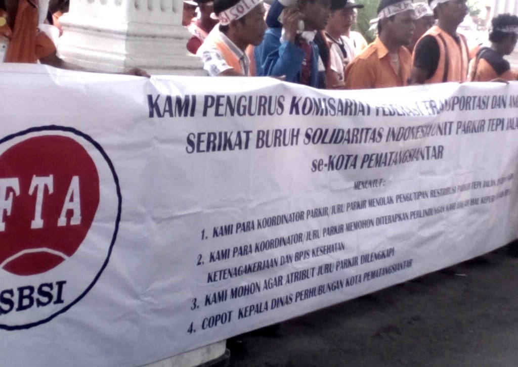 Dalam orasinya, kelompok massa yang dipimpin langsung oleh ketua FTA-SBSI Siantar, Ramlan Sinaga menyampaikan 4 (empat) tuntutan, yaitu : 1. Menolak pengutipan retribusi parker tepi jalan, 2. Meminta ditetapkannya kepesertaan BPJS ketenagakerjaan dan BPJS Kesehatan, 3. Permohonan agar atribut juru parkir dilengkapi, 4. Menuntut agar Walikota segera mencopot jabatan kepala dinas perhubungan kota Pematangsiantar.