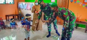 Sambut Tahun Ajaran Baru, Satgas Yonif 512/QY Bagikan Alat Tulis Kepada Anak-anak di Tapal Batas